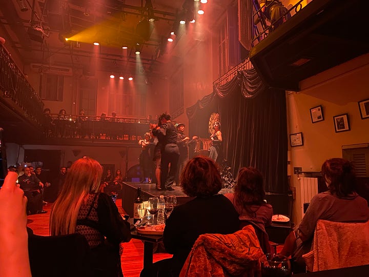 My first late evening was Saturday. Myself, Lauren and some others from our little hostel enjoyed an impassioned tango show. Although Tango to begin with is a bit intimate, this show brought in elements of cabaret, magic and acrobatics to up the drama. Although not the typical Argentine tango, I found its blended boundaries borne of a contemporary iteration on classic tango as romantic art and expression to be very enjoyable.